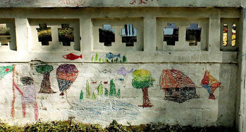 The most obvious part of URONTO Residential Art exchange program is that we always involve local school children with us. From the very first episode till today in all the episodes children has been participating from different schools in the local area where we have worked. Sometimes they painted on the walls sometimes we had a day long sketch workshop with them sometimes a Theatre workshop or may be Kalamkari workshop on cloths too.