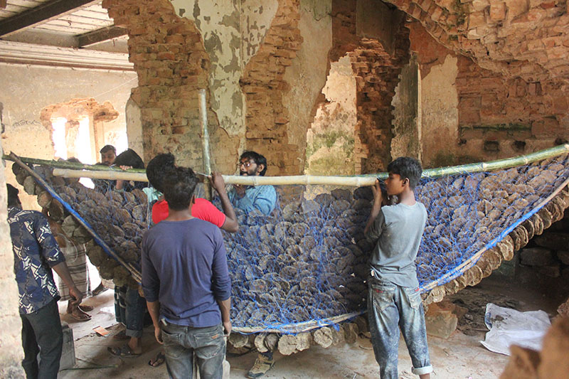 A public art by artist Rangajib Roy during the 9th Episode of Uronto residential art exchange program in Dubolhati Palace in Naogaon, BD.