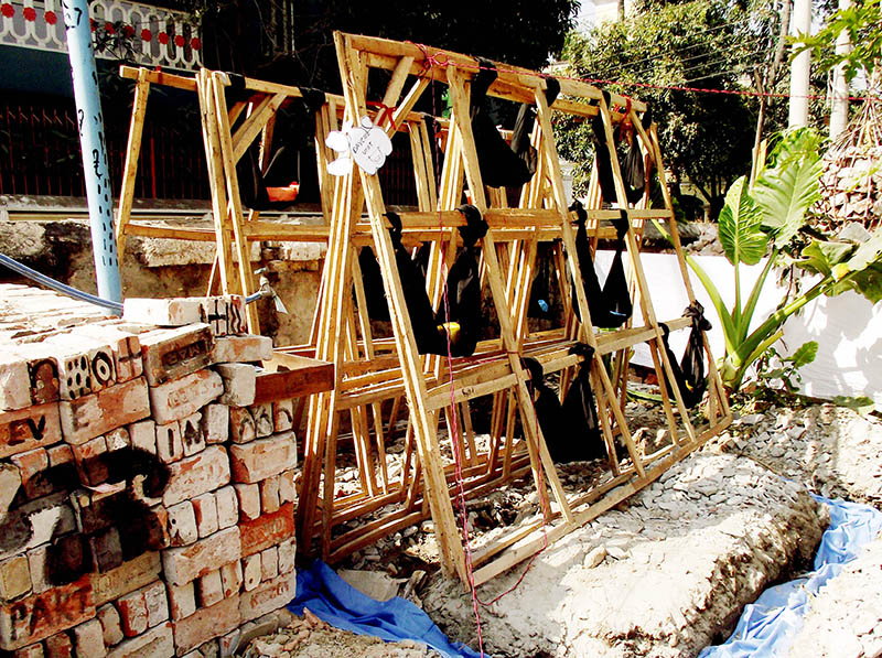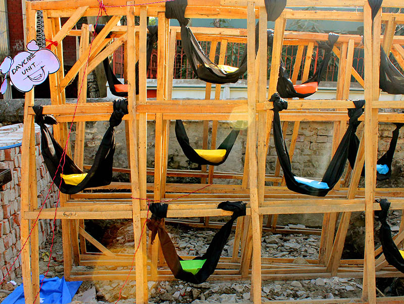 When a old structure is demolished the Old bricks are sorted and the broken ones are of no use in future. But they are a significant part of the structure within which a family grew up and built their values and experiences. Artists identified the the negligence and made a day care corner for the bricks with the found materials from the site. It is a simple installation with a satire approach and a rare composition of the elements scattered there. If human child needs a care center because they are valuable to you then bricks are something to care about while they are a important part of nay structure we make and demolished eventually.