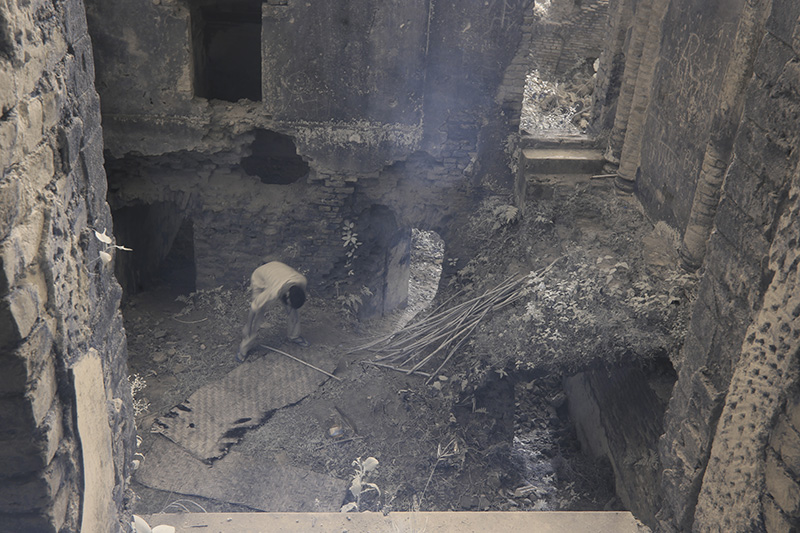 Without any fear Deepak took that mat addressing a vague reality and started to assemble leftover materials in the palace during the night time. Roaming suspiciously around the palace during the dark night was his part of the journey into this work. The final outcome can tell many stories depending on who and when communicates to it.