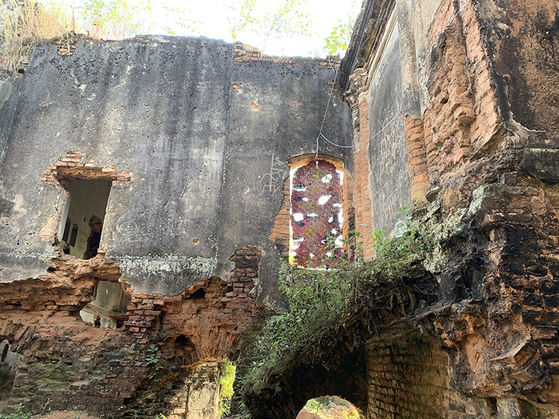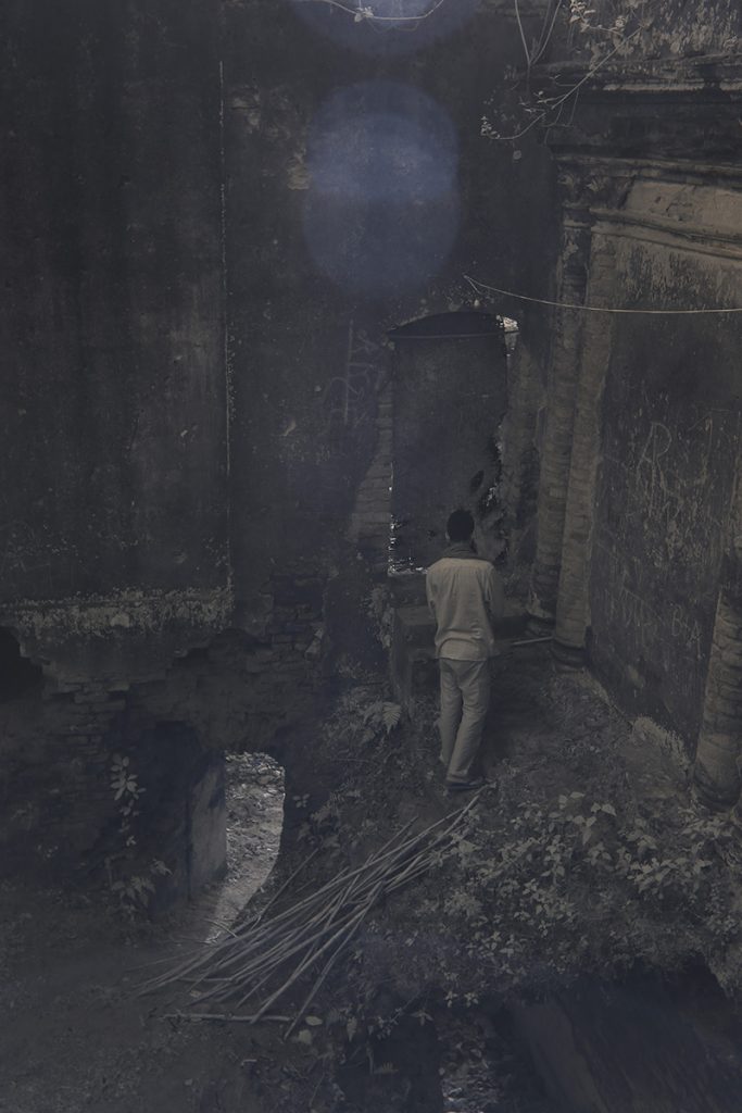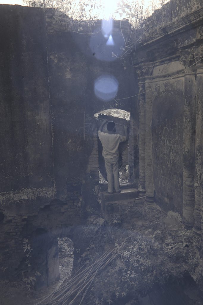 A site-responsive composition by Deepak Kumar Yadav at Dubolhati Palace during the residential art exchange program in Naogaon, Bd.