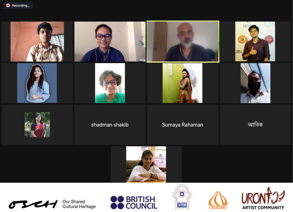 In the online discussion with the Youth Board Members of the OSCH project, artist, curator, and activist Wakilur Rahman shared his personal experiences of working with museums in Bangladesh. He discussed the potential threats faced by museums. He also talked about possibilities in Bangladesh and beyond borders.