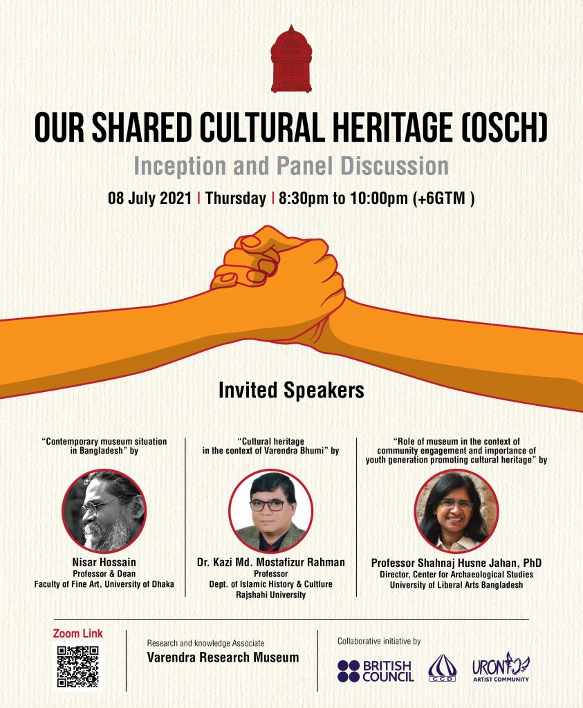 Our Shared Cultural Heritage-OSCH is a unique opportunity for youth to get professional training for understanding and promoting cultural heritage, create a global youth network and work directly with renowned Museums. This Rajshahi chapter of OSCH is focusing on youth from Rajshahi and Varendra Research Museum is a knowledge and research associate in the project.