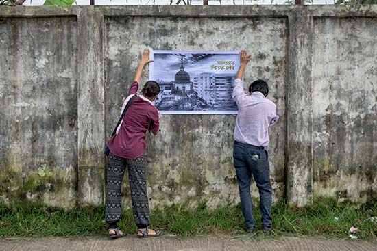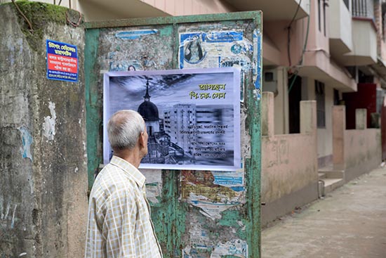 She developed a small performance collaborated with the family members of present owner , who are known as Ghosh family. Her performance was title: “PK Sen is back”, which is a performance showing the intriguing stories woven around the heritage and questions the constant conflict on the ownership of the property. This conflict also further states the complex human relationships with the structures, properties and culture we built around ourselves. Aditi spiced up the performance by putting posters all over the city just the day before of the performance taking place, and the posters was saying that P K Sen is back, a mysterious dialogue for the present social curiosity. Artist wanted to have the reactions as a part of her performance.