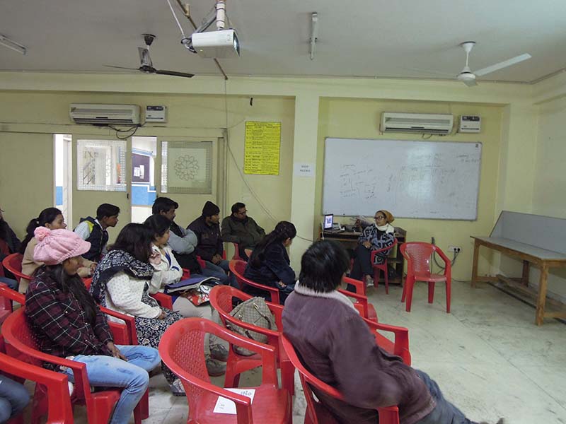 Director of URONTO Artist Community was invited at the Tecnia Institute in Delhi for small presentation with their Arts Student to give them a motivation to experiment with new ideas in their practices. The presentation was arranged in Jan 2017. Tecnia institute students were very much motivated by the presentation by Sadya Mizan, they specially got interested in the multidisciplinary arts practices that were shown. The students shared the challenges of contemporary practices and a discussion session followed on finding possible solutions.