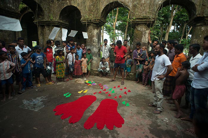 A public art intervention by Abhimanyu Dalui during the 7th episode of Uronto residential art exchange program at Sunamganj, BD.