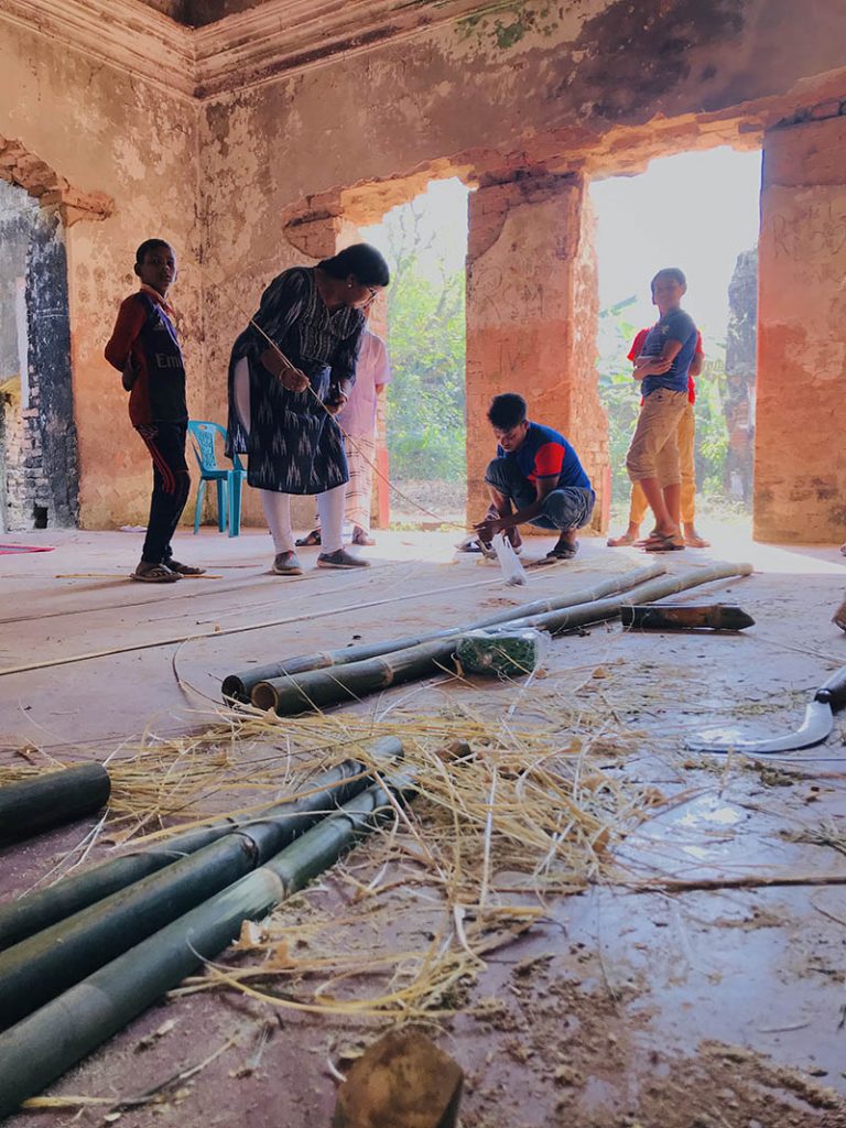 The work was a collaboration between the artist and local craft-men, who are expert with bamboo works and framing techniques.