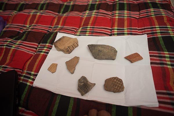 Adopting a performative mode, Julian acted as a “Western Archeologist” gathering small clay and ceramic fragments from the ground area around the site. Soon many villagers were joining him and had a prime collection of clay fragments. from there artist washed and cleaned the fragments in a highly public way so that the historic items normally littering the floor were seen, at least through the lens of hegemony, as precious. Once the fragments had dried in the sun, he again gathered them and in private documented each fragment with his camera establishing an archive of the collective “dig”.