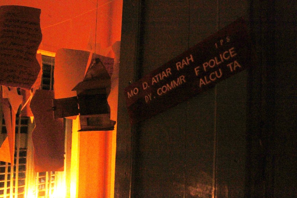 The work expresses the process and the emotions related to the communications between a husband working in a neighbor country as a commissioner and a wife who is all alone in her husbands house in Kushtia with her kids. The work not only connected the elements of the story but also incorporated particular smells to create a alternative presence of certain characters of the story.