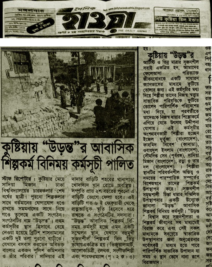 13 Feb URONTO Residential Art Exchange Program First Episode in Kushtia Local News Papers Posted at 15:51h in Review by URONTO Artist Community 0 Comments Share Print page 0 Likes