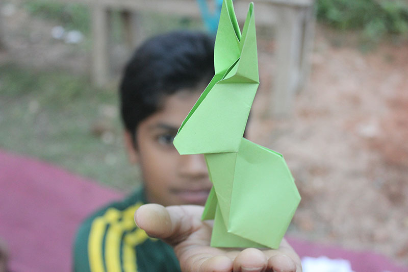 The workshop was conducted by Asaduzzaman Rup. He is a visual artists from Bangladesh, who became enthusiast about origami and acquired a significant skill on miniature origami. Many of his work has been part of international origami festival in India and Japan, specially his origami Bengali fonts achieved honor and reputation in international arena.
