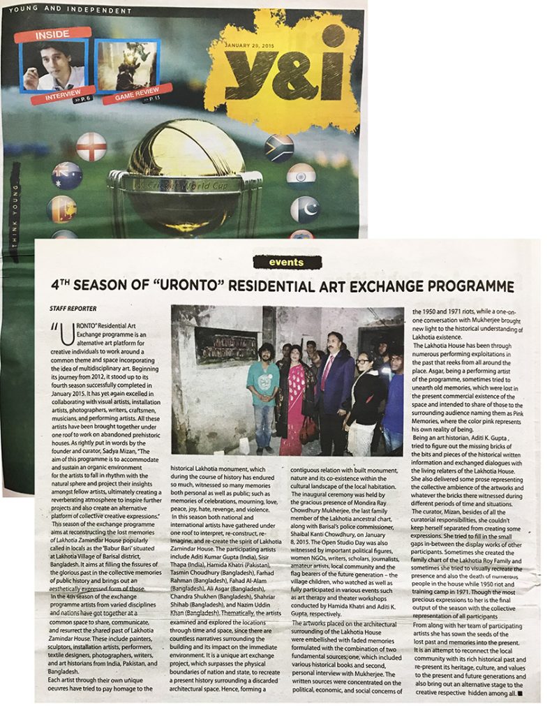 29 Jan Young & Independent (Y&I) covering Urontos activity in Barisal. Posted at 09:52h in Review by URONTO Artist Community 0 Comments Young & Independent is a weekly newspaper under The Indipendent Newspaper in Bangladesh. Share Print page 0 Likes